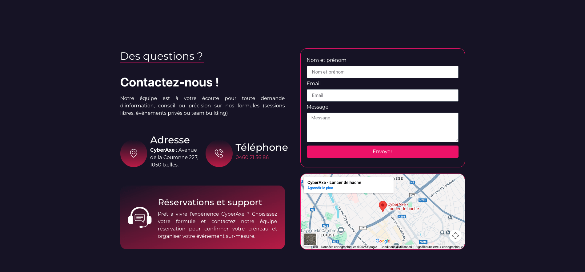 CyberAxe est une toute nouvelle expérience de lancer de hache à Bruxelles, située Avenue de la Couronne à Ixelles.