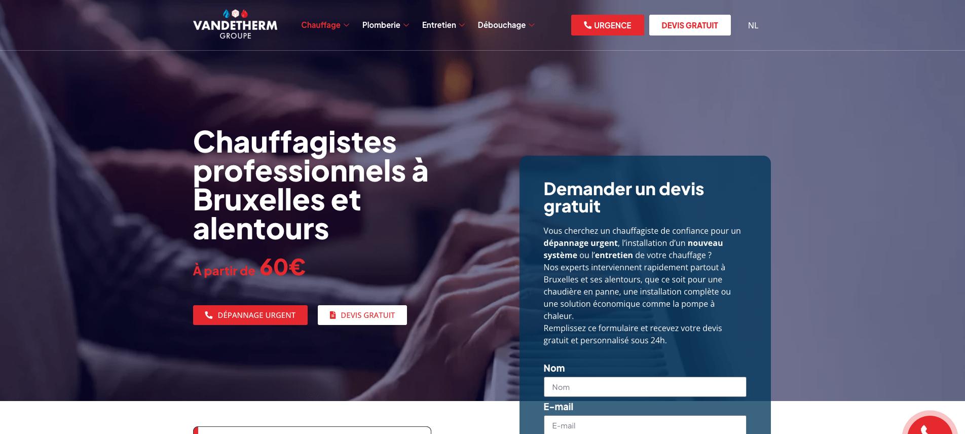 Vandetherm Groupe est un acteur reconnu du chauffage, de la plomberie et de la climatisation sur l’ensemble de Bruxelles, et l’ensemble des communes voisines en Flandre et en Wallonie.